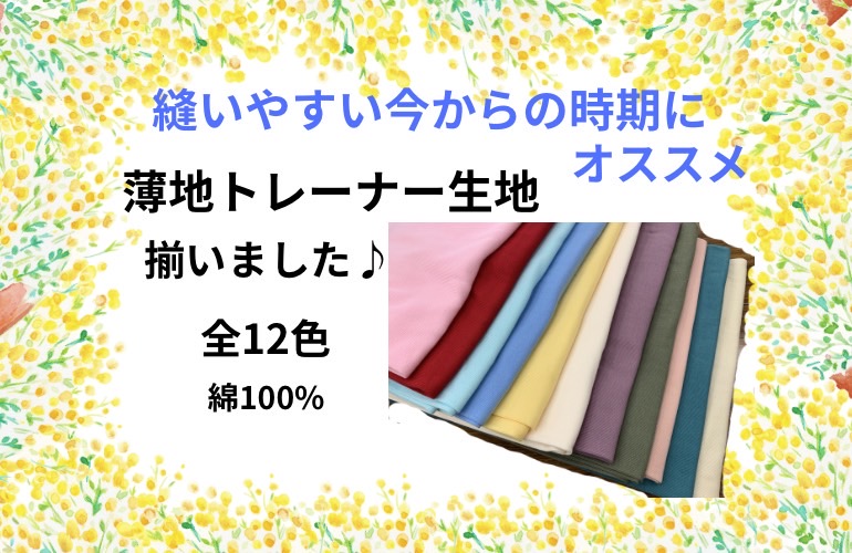 薄手トレーナー生地揃いました♪